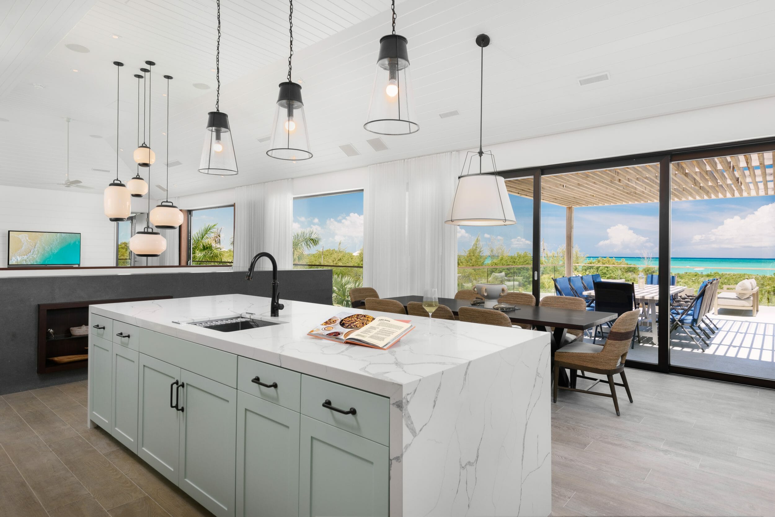 Only steps from the beach, this modern villa boasts fresh, airy interiors and a variety of outdoor spaces to eat, drink and lounge in perfect privacy. Set into manicured grounds just back from the white sands of Grace Bay beach and surrounded by lush vegetation, Aqua Verde is a true tropical oasis. Comprised of three bedrooms and an open plan kitchen and living room, its size and layout suits both families and groups of friends.